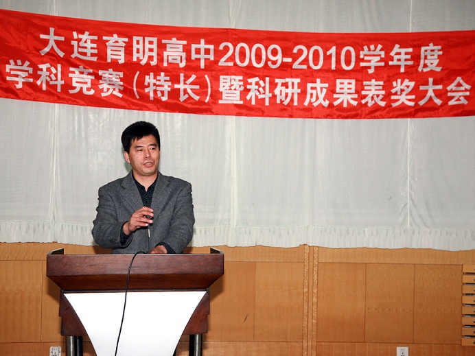 3月7日下午,我校进行了2010年学科竞赛暨科研成果表奖大会。会上,首先对2010年的科研成果进行表奖。科研处刘晓宁主任宣布了表奖决定,他说明:本次评奖共收到科研论文52篇,各类赛课20节,在数字上超过了前两年,呈逐年增长的良好态势。投身教科研的老师越来越多,并因此受益,终身受益,一批老师也因此茁壮成长,教科研优化了我们的生命状态。特别是近三年,我校的教科研事业迅速崛起,科研骨干其表现、其作用、其价值、其影响乃至其发展不断地凸显出来。刘校长亲自为获奖教师颁发奖金。其后,由陈德军副书记宣布了学科竞赛和艺体比赛成绩,强调了我校在以特长生培养为主的校本办学方面的突出成绩,十年如一,坚持不懈,探索了一条特色办学的有效途径。他随即宣布了获得嘉奖的教练员名单,由刘校长为他们一一表奖。