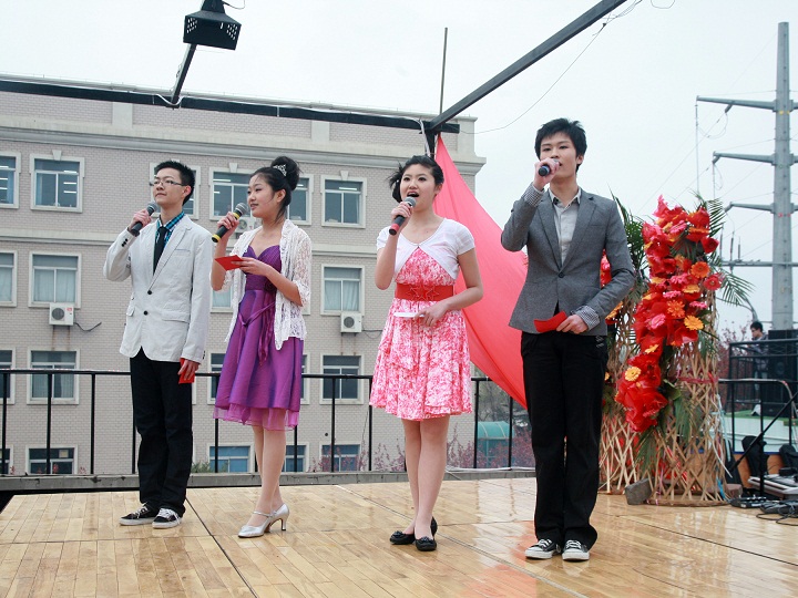 尽管在晚会前飘落了一场春雨,空气中凉意阵阵,然而这丝毫挡不住师生火热的激情,校园里完全是热潮涌动,一片欢声笑语。