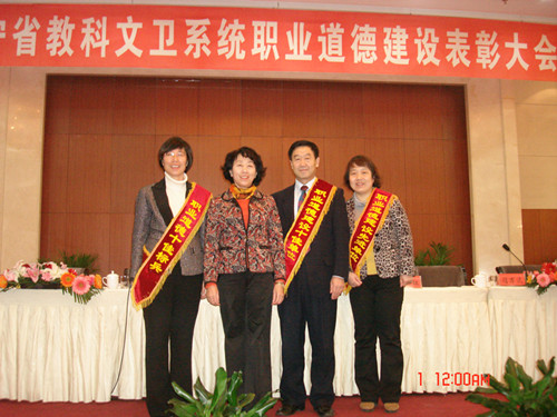 11月22日,全省教科文卫系统职业道德建设表彰大会在沈阳市召开。大连育明高中慕德兰老师荣获省职业道德建设十佳标兵称号。她是大连市唯一一名获此项荣誉之人。