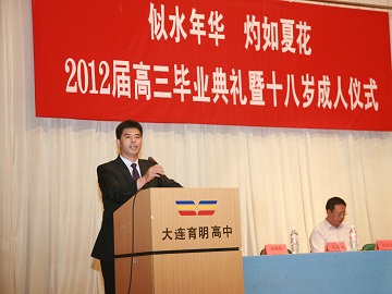 2012年6月10日,大连育明高中2012年高三毕业典礼暨十八岁成人仪式于校体育馆隆重举行。校领导和高三全体师生参加了会议。
