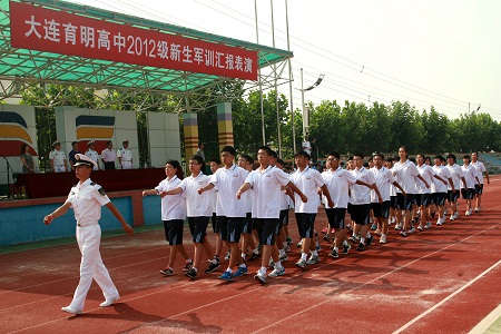 为期一周的火热的新生军训今日结束了。上午9时开始,在学校体育场举行了育明高中2012级新生军训汇报表演。