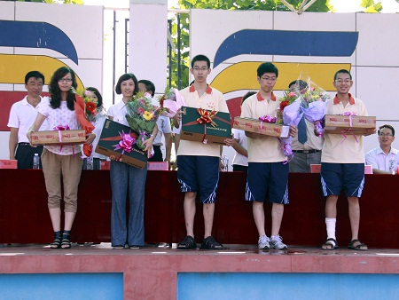 学校还特别表奖了国际金牌获得者姜一君、王贺明、陈鑫与高考大连市文理状元吕思瑶、王天一。