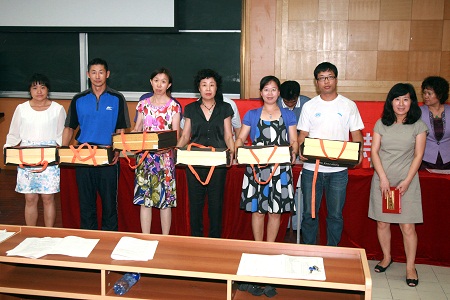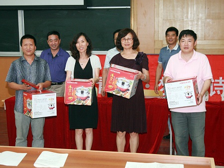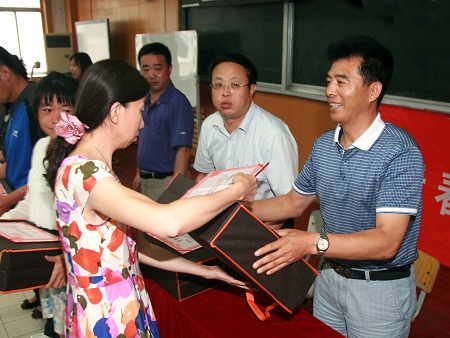 学校党总支宣布了表彰决定,校领导为在“创先争优”活动获得荣誉的教师颁发奖品。