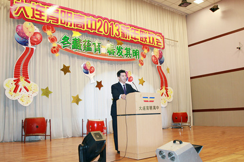 陈德军书记主持了联欢会,他向全校师生发表了新年祝福。刘春普校长即兴讲话,他简要地回顾了2012年我校取得的一系列令人瞩目的成绩,鼓励全校师生齐心协力,迎接新的挑战,更要迎接新的辉煌。随后进行了精彩演出。今年的节目形式进一步呈现了多元化的色彩:有教师表演的京剧唱段,还有教师的小合唱等;学生的节目有歌舞、相声、魔术,还有手语表演,近来十分走俏的舞蹈江南style也由十四位同学火热推出…