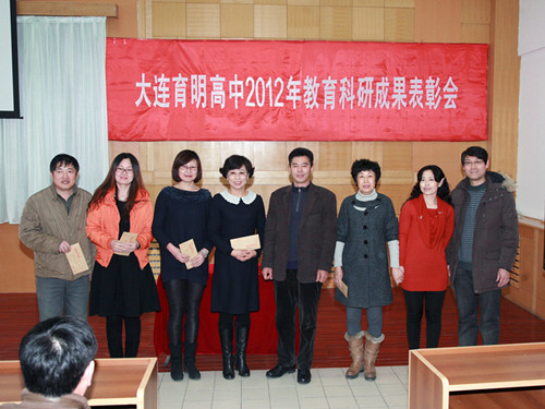 今年特别表扬了化学组马爱丰老师,他平日积极参加教育科研工作,具有扎实的基本功和创新能力,去年代表辽宁省参加全国赛课,一举获得特等奖,是辽宁省参赛选手中唯一的一个,为此学校也给予了相应的奖品,以资鼓励;原政治组长吕小曼,尽管暂时离开教学一线,但是仍然对教科研表现了难以割舍的情怀,并为此不辞辛苦,取得了可喜的成果,堪为表率。