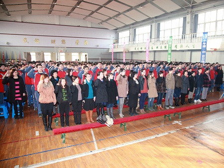 3月7日下午,全体高三师生在体育馆参加了大连育明高中2013届“决胜高考誓师大会”。