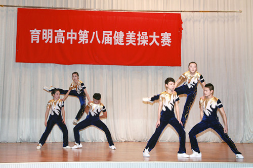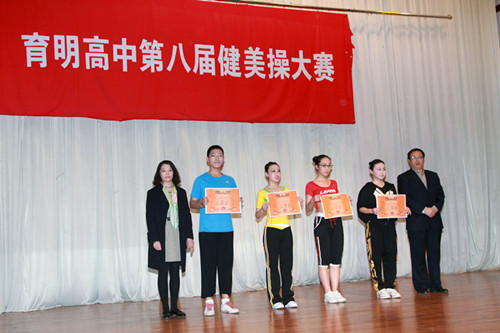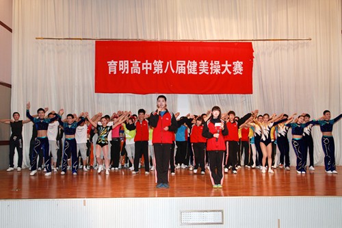 4月16日下午,由文艺部主办的育明高中第八届健美操大赛在学校体育馆如期举行。大赛其间我校全体高一师生观看了比赛。大赛由六位高二健美操队队员担当评委,几位校领导受邀观看比赛并担当了颁奖嘉宾。