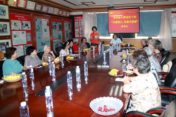 26日上午,育明高中召开了以“与党同心 共筑中国梦”为主题的离退休老党员座谈会。