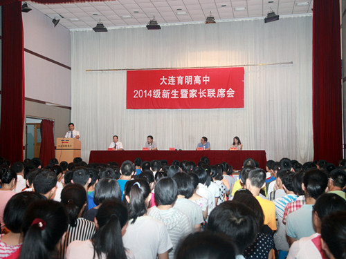 8月24日早,大连育明高中体育馆座无虚席,高一新生及家长整齐就座,校级领导亲临会场。会议安排有序,振奋人心。