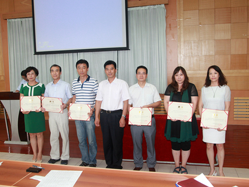| 8月25日下午,我校召开了全校教职工大会。会上,陈德军副书记代表学校党总支宣布了中层干部竞聘结果。本期受聘的中层干部分别是:校长处理兼德育处主任孙颖,教务处主任张敬燕,教科研信息中心主任刘晓宁,总务处主任刘延茂,办公室主任吕小曼,教务处副主任王青林,德育处副主任董玉国、周茂成,教科研信息中心副主任郭方彦、刘升。本期干部受聘为期三年。