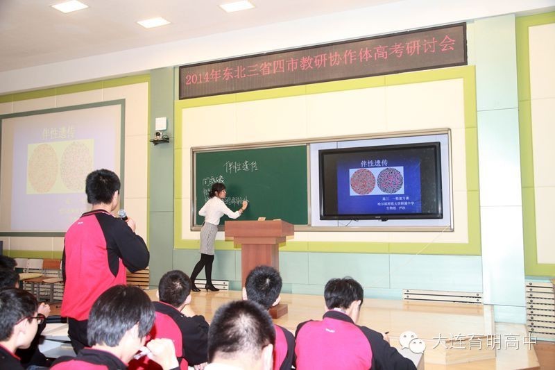 2014年10月9号,东北三省四市协作体高考研讨会在我校圆满召开。来自东北三省及市区教研员和各学校老师齐聚育明,针对高考的复习策略,一轮复习策略及高考备考的试卷讲评等内容,开展了为期一天的高考研讨课和讨论交流。上午由沈阳36中陈元老师,吉林市实验中学瞿玉堂老师,哈师大附中尹冰老师联袂奉献了“伴性遗传”同课异构的精彩课堂。我校高三年级学生在课堂表现活跃,积极配合各位老师完成课堂教学,受到上课老师和听课老师一致好评。我校高三备课组组长张明明老师代表大连市生物教师上了一节“遗传因子发现”的试卷讲评课,引导学生探寻规律,总结归纳有高度有深度,充分展示了大连育明高中的风采,受到同行的一致好评。