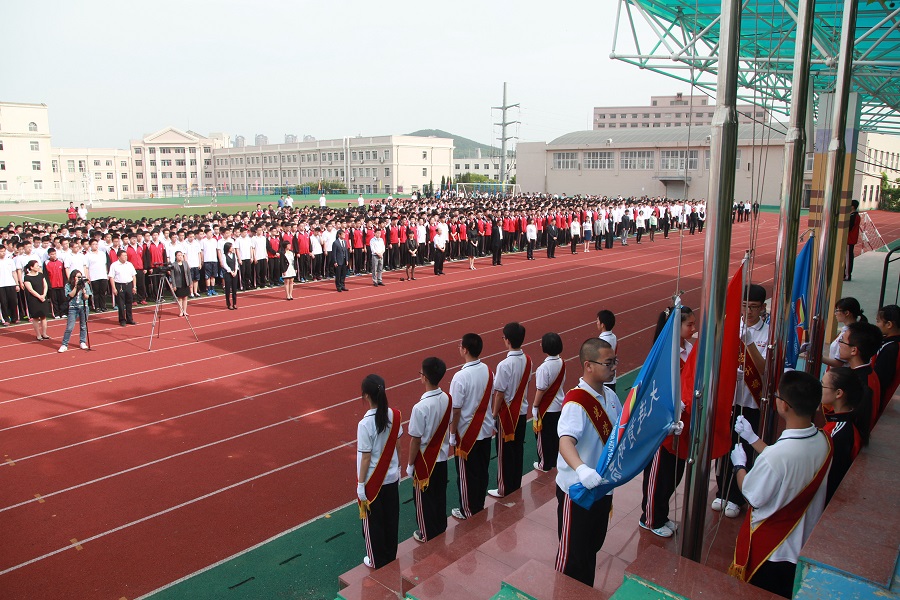 | 6月1日清晨,育明高中全校师生齐聚操场,举行2015届毕业升旗仪式。高三500多名学子,在母校度过了三年的时光,在即将毕业之际,升起国旗的同时,也升起了新的梦想。