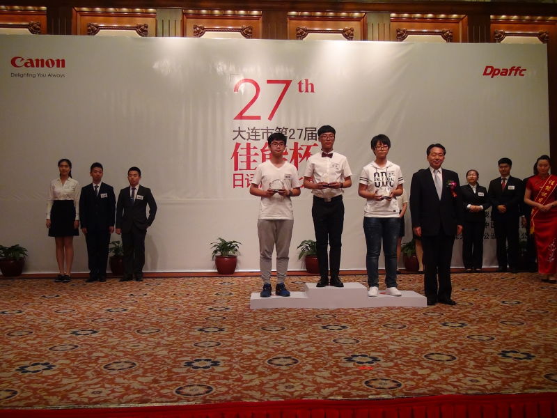 本月24日,由大连市人民对外友好协会和佳能大连办公设备有限公司主办的大连市第27届“佳能杯”日语演讲比赛在富丽华大酒店圆满落幕。中日友好协会秘书长袁敏道、大连市人民对外友好协会会长怀忠民、佳能股份有限公司副总裁田中稔三、佳能亚洲营销集团总代表小泽秀树等出席了决赛并发表讲话。该项赛事自今年3月报名开始,共吸引了10000余人报名参加,最后,来自大学专业组、大学非专业组、高中组、初中组、小学组的18名选手参加了决赛。