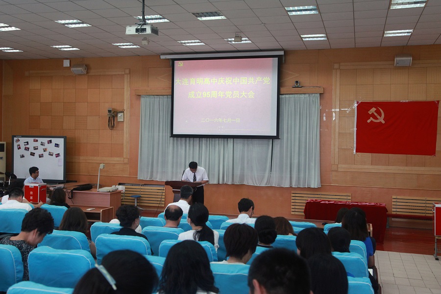 7月1日下午,育明高中党总支在学校四楼阶梯教室隆重召开党员大会庆祝建党95周年。