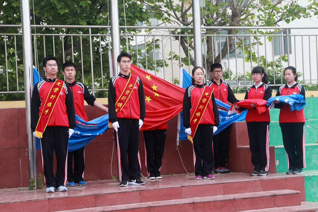 3.4高三四班升旗手是刘宇琦,刘宇琦同学是高三四班班长。她品学兼优,外向开朗,热爱班级。高三四班在班主任马爱丰老师和她的带领下,在学科竞赛取得了一枚金牌、七个省一等奖的荣誉。自主招生中,清华、北大、美国伯克利大学、日本东京大学都有四班同学成功的身影。在校园活动中,四班同学积极参与,在课本剧大赛中她们专注投入,篮球赛中他们飒爽英姿,英语演讲比赛中他们激情昂扬。岁月更迭,弹指一挥,三载寒窗,转瞬即时逝,在这一千多个日子里,他们留给母校的一切是深刻而永恒的,祝愿他们在金色的六月高考成功,金榜题名!