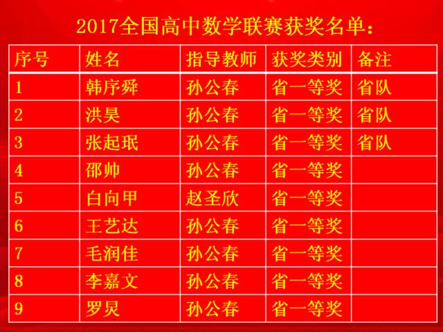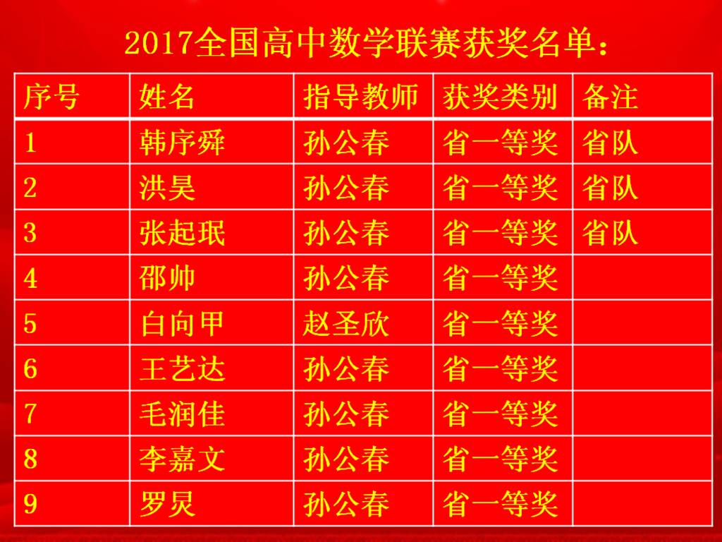 在此向所有取得优异成绩的同学表示祝贺,向培育他们的教练员孙公春老师和赵圣欣老师表示感谢,向陪伴付出的家长和班主任表示感谢!