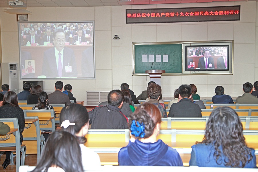 | 10月18日,在育明高中多功能教师里,育明高中全体教师一起收看了习总书记的十九大报告,老师们牢记“青年兴则国家兴,青年强则国家强”,更加意识到教育育人的神圣使命。