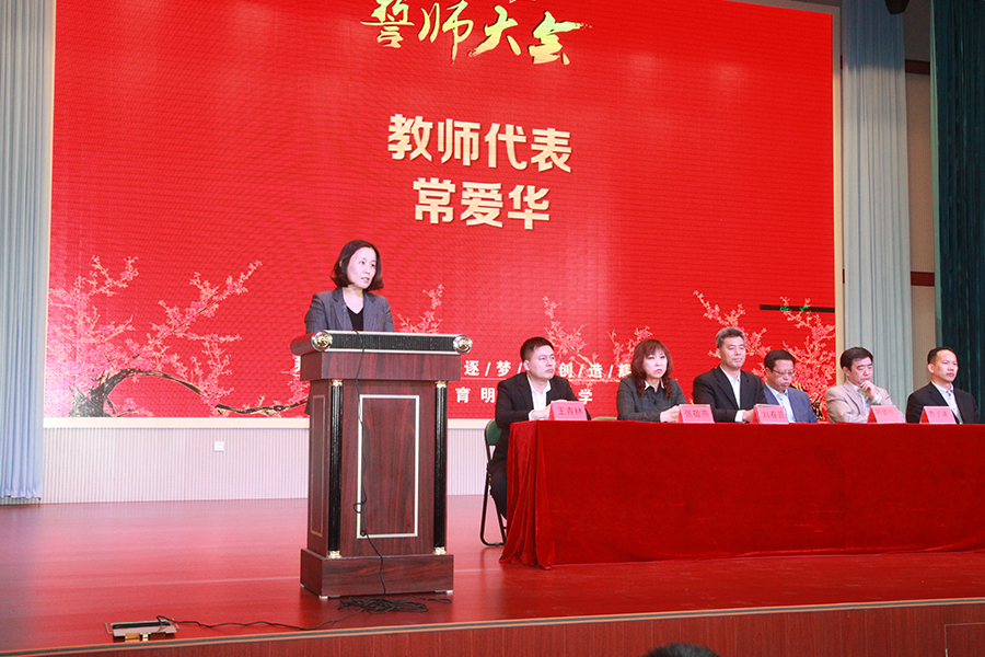 高三教师代表、高三九班班主任常爱华老师登台发言,她用饱含深情的语言给予孩子们力量与希望,提出了中肯的建议,在态度、信心、心态、方法方面给出了具体的指导,并代表全体高三教师做出了庄严的承诺:“用心备课,精心授课,潜心教研,把握高考新动向;耐心辅导,热心答疑,贴心守护,助力高考新高度!”十年磨一剑,今朝试锋芒,剑出鞘,必将所向披靡!育明高中定能今朝御马越雄关,六月扬眉传佳音!