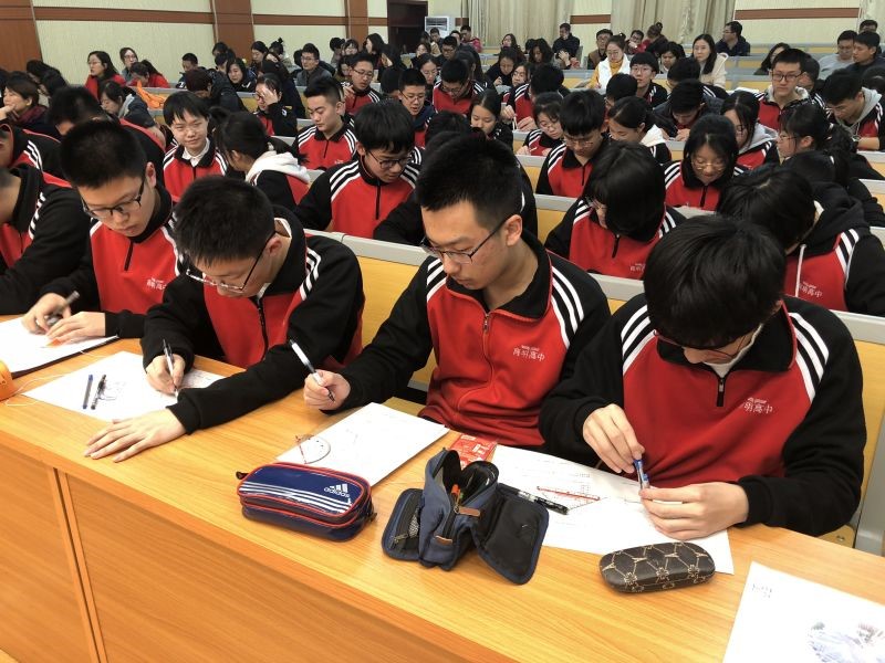 当天下午,活动现场五楼阶梯教室座无虚席。郭伟教态亲切,语言简洁,板书规范,给全市高一老师上了一节很好的示范课。郭伟老师在教学过程中,创设了恰当的问题情境,带领学生理清数学概念的源头和背景,自然而然地让学生对知识产生的必然性、合理性有了清晰的认识。整堂课的教学核心内容通过一道让学生动手操作的题目展开,学生在经历了动手操作—类比归纳—演算推理—合作交流的活动过程后深刻地理解了概念的内涵和外延,掌握了学习内容。整节课采用的是“问题探究式的教学模式,教学过程中落实了数学抽象、直观想象、数学运算、逻辑推理等数学核心素养。