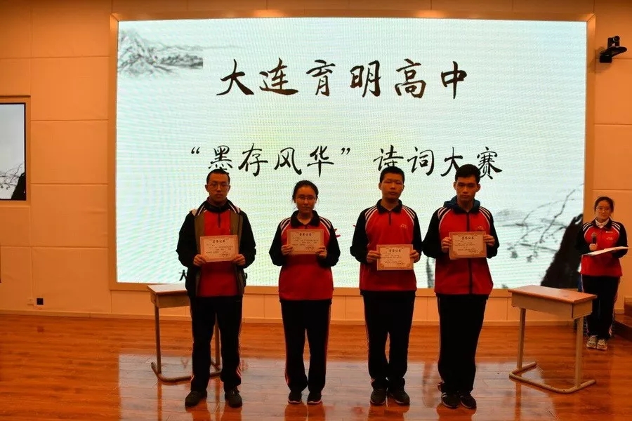 书山卧虎,学海藏龙,育明藏蛟,人才辈出。在总决赛中,选手个个博闻强记,侃侃而谈,其中最令人叹服的应属来自一年八班的选手米庆荣,他经过海选、知识竞猜、飞花令三个阶段的比拼,脱颖而出,他稳抓稳打,步步为营,以渊博的知识,良好的心理素质,丰富的比赛经验和沉稳的临场发挥一举夺魁,获得“大连育明高中第一届‘墨存风华’主题诗词大会”的总冠军。