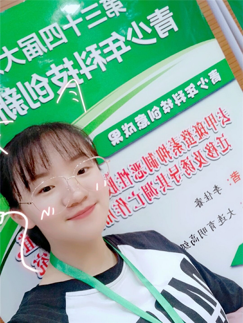 在2018年12月22日的大连市科技创新大赛中,她获得了大连市二等奖,她坚信如果做了更充分的准备,在明年的科技创新大赛中一定会再创佳绩,取得更好的成绩!