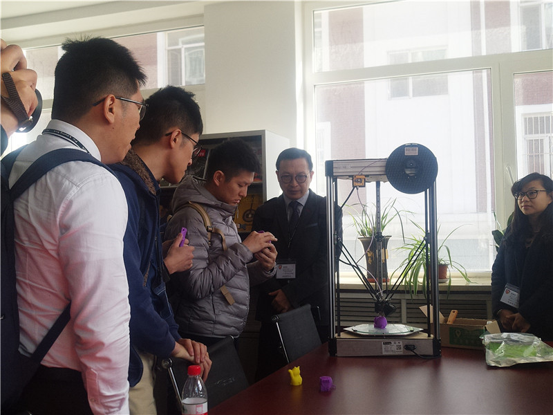 通过与香港校长老师的交流了解到,目前香港地区中小学致力于“STEM”教育,即重点加强学生科学(Science)、技术(Technology)、工程(Engineering)、数学(Mathematics)四大方面素养,这与我校培养“具有学科专长的创新拔尖人才”,注重学生学科专长、科技创新、科学人文素养教育的理念不谋而合。双方针对培养高中生科技创新能力进一步交流,同时为交流团展示了多年来我校学生在科技创新上取得的骄人成绩。王青林主任展示了我校毕业生杨玉涵发明的“磁悬浮式按键钢琴”,该设计发明通过磁悬浮技术的应用,实现了乐器的独特创新,曾获得三项世界级发明金奖;科研处主任刘升为交流团播放了我校学生参加科技创新大赛的视频,并带领他们参观了我校3D打印机设备,展示了我校科技相关校本课程的资源配置;另外我校学生代表芦旌坤同学也为交流团展示了他的发明“多功能模块化防护口罩”,并对介绍了他在西雅图参加清华国际创新挑战赛期间设计的智能节水系统,中英文相结合地分享了他先进的创新理念及成果,交流团的校长及老师们对他的创新精神表示了极力肯定。
