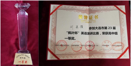 2019年5月29日,大连市第二十三届“枫叶杯”英语演讲比赛决赛在大连日航饭店圆满落下帷幕,经过激烈角逐,我校高一十班刘嘉骥同学荣获高中组一等奖。