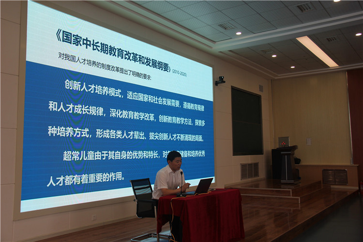 在观看了学校的教育教学设施之后,李振权校长做了题为“创建‘富有成就未来力量’的学校教育——拔尖创新人才培养的探索与实践”的专题报告。在1个半小时的报告里,李校长围绕拔尖创新人才培养的探索背景、探索实践与探索成果进行深入的介绍,就代表团关心的办学理念、师资培养、课程建设、办学成果、办学经验展开了深入的讲解,演绎了我校“学科专长教育拔尖创新人才培养”的办学特色,诠释了育明拔尖创新人才培养的基本架构和实施经验,使代表团成员受益匪浅。