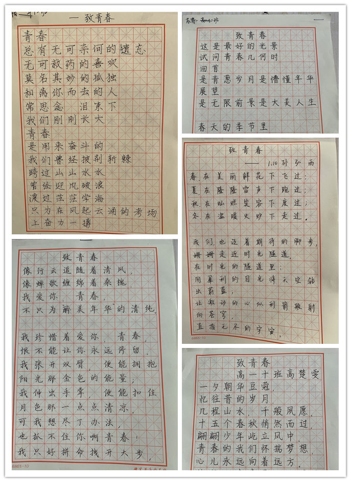 本次新诗作品征集,要求同学们以“致青春”为创作主题,以闻一多先生提倡的“三美”原则为诗歌创作要求。征集令下发后,高一年级同学积极踊跃参加,上交作品中饱含着同学少年对青春价值的思索与感悟。作品或昂扬向上,迸发奋斗激情;或温婉含蓄,低吟人文情怀;或胸怀天下,饱含家国情怀。
