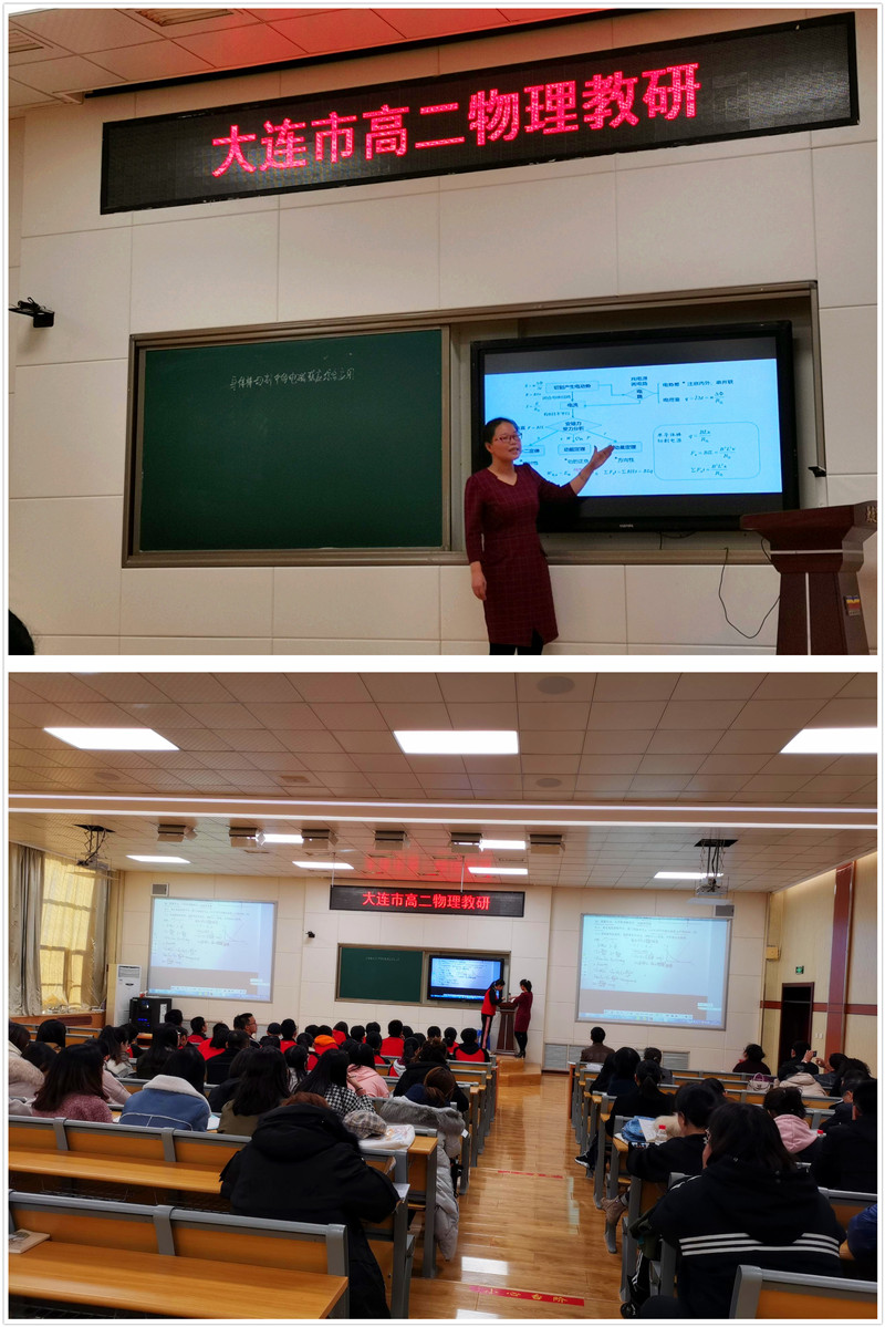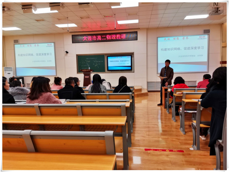 | 2019年11月19日,大连市高二物理教研活动在大连育明高级中学五楼阶梯教室举行。本次活动由大连教育学院高中中心物理教研员侯贵民主持,参会成员包括全市的高二的物理教师和来自辽宁师范大学的22名研究生。