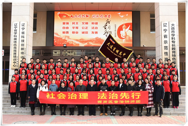 本次讲座得到大连市文明办、西岗区司法局的高度重视,派出包括法官、检察官、公安民警、律师等师资团队,他们分别是王金海、孙鹏、迟瑞堂、牛珍、杨乐、丛蕾、雒园园、张棋、雷红云、于海宁、梁照强、冯丹丹、刘春莹、姜艳、尚丽娜、张红等。主讲老师表示育明高中的学生思想活跃,视野开阔,有浓厚的爱国情怀。通过这次讲座,能够更加增强学生的法律意识和法治观念。