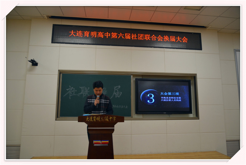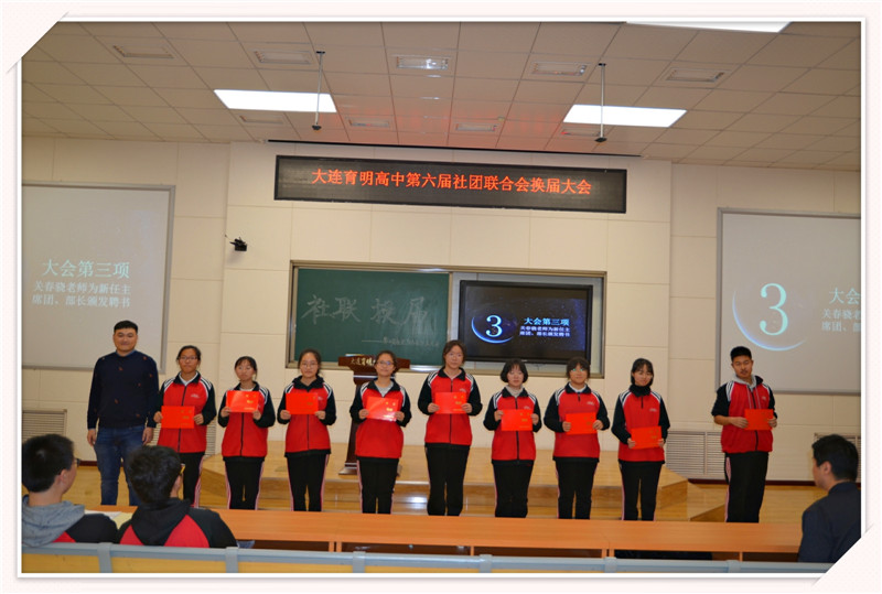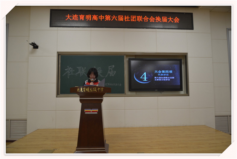 | 为促进大连育明高级中学社团联合会工作顺利进行,更好的服务、引领社团,推动社联社团不断向前迈进,大连育明高级中学社团联合会第五届委员会换届大会近日在五楼阶梯教室举行。
