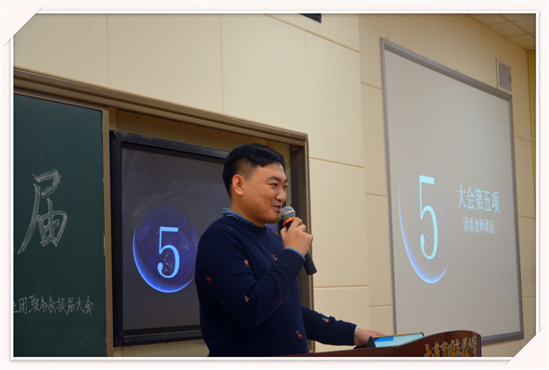 由团委书记辛海泉老师代表学校宣读了第六届社团联合会人员名单,并传达了校党总支、德育处对新一届社团联合会的祝贺和期望。