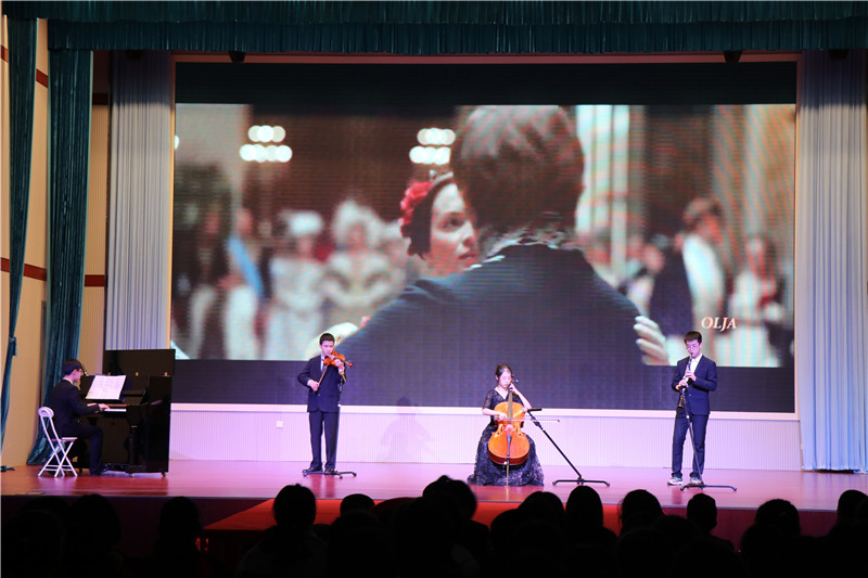 时代风云聚变,近代中国历史的推演之中,中华文化广泛学习,深度思考,吸取其他国家发展的宝贵经验。随着一带一路的深入推进,俄国优秀文化作品也进入了我们的生活。学校Phantom乐团的四重奏《shostakovich second waltz parts》以钢琴为主调,辅以其他三种西洋乐器,将这首著名华尔兹曲目带到同学们身边,让大家体味到了俄国音乐文化的特色。
