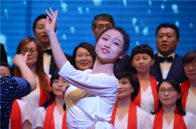 教师合唱团带来的《绒花》和《长江之歌》受到了同学们的热烈支持。现场气氛热烈,将音乐会推向了了高潮。教师们唱出了他们对新时代的期盼与祝愿,唱出了祖国的美丽与富强,二年八班朱梓桐同学优美的伴舞也是节目的点睛之笔。