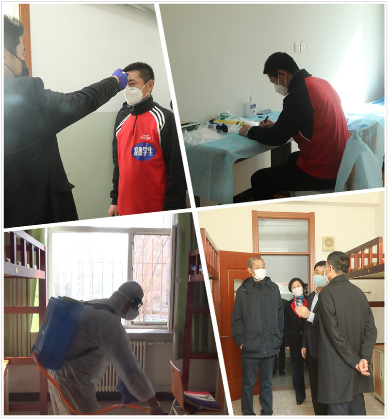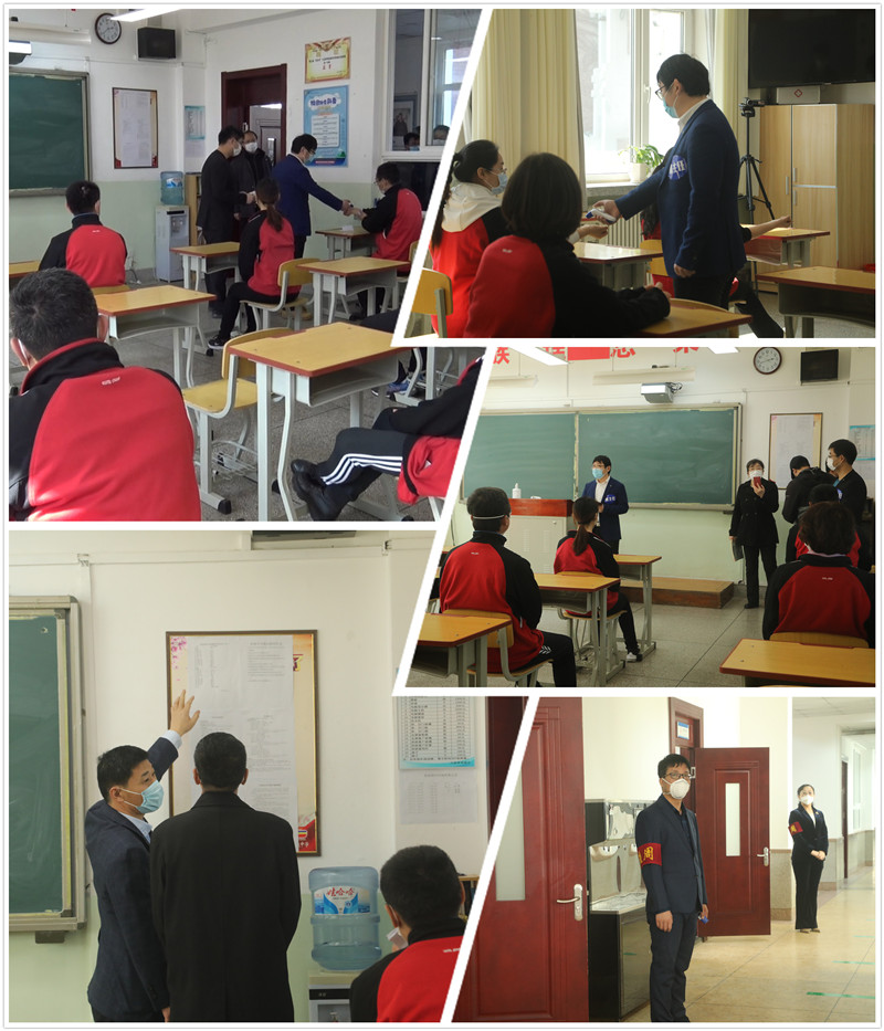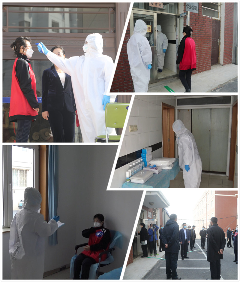 演练开始前,学校领导班子向教育局领导介绍了我校疫情防控工作部署,带大家参观了我校储备的疫情防控物资,并对市教育局为我校无偿提供的红外线热像仪、防护服等物资表示十分感谢。赵阳局长与省教育厅领导进行视频连线,汇报育明高中防疫物质储备情况,省教育厅领导对学校物资储备充足完备提出表扬。