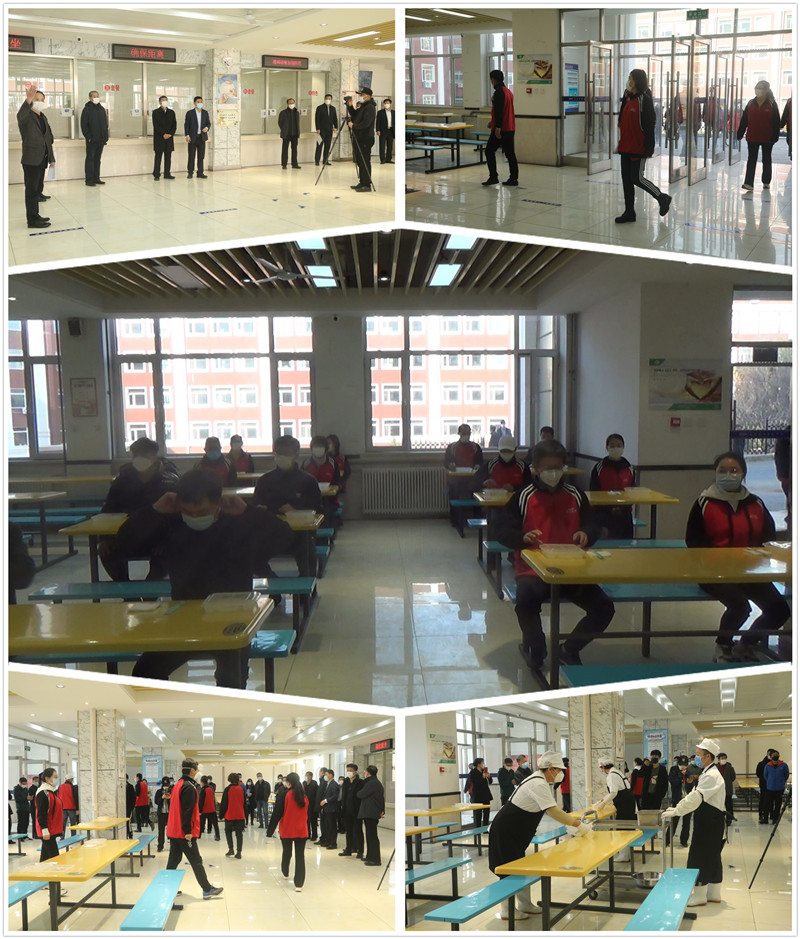 学生中午准备就餐,先按照指定路线到洗手间洗手,然后按照指定路线到食堂,按固定位置就坐。就餐要求,每个学生按照固定编码入座,餐前食堂工作人员将饭盒分发到每个位置,就餐后学生有序撤离,餐盒由工作人员回收消毒。午餐后学生到操场活动,不得回教学楼,避免与下一批次就餐同学迎面冲突。