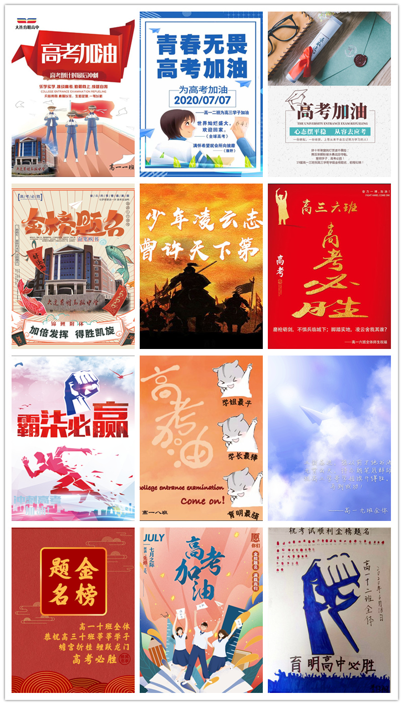 6月22日,高一年级同学率先发起“海报送祝福”活动,各班级同学集思广益,凝心聚力,共同设计加油祝福海报,利用周末时间张贴在高三各班级门口,表达对对高三同学的祝福,为高三同学鼓劲。
