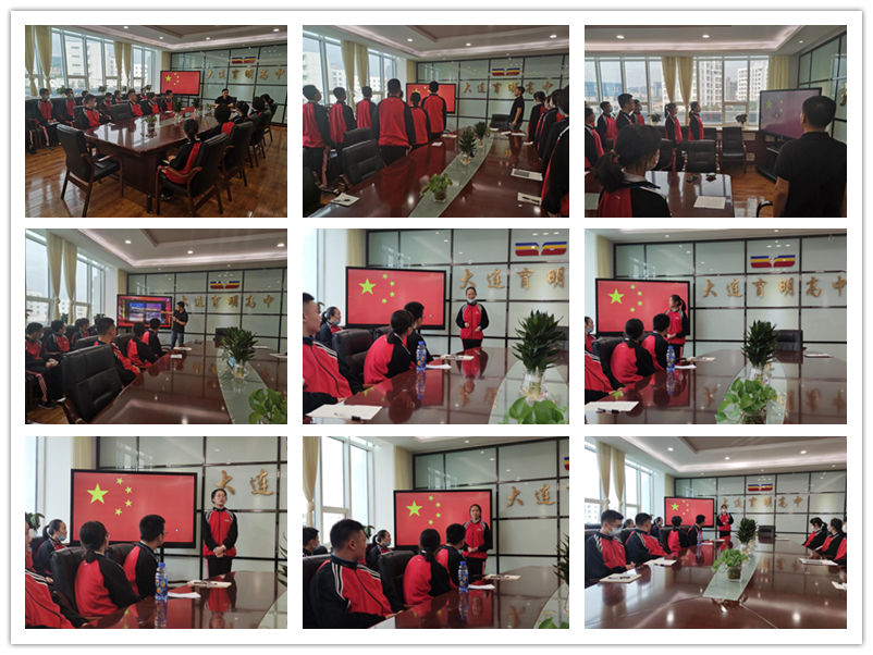 当庄严肃穆的国歌声响起,育明高中团委学生干部与青年自信社主要社员代表全体起立,嘹亮的国歌合唱声在第一会议室响起,国歌雄伟悲壮,激荡在每一个人的心中。