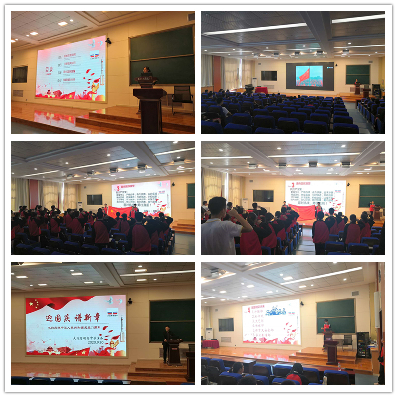 七十一载春华秋实,七十一载风雨兼程,正是千千万万华夏儿女的接力奋斗,才换得今天幸福的新时代。为了深化同学们的民族意识及价值认同感,弘扬中华民族优秀文化,助力实现中华民族伟大复兴的中国梦,升华青少年爱国主义精神,大连育明高中学生会全体成员于9月30日在四楼阶梯教室开展了“迎国庆谱新章”为主题的国庆特别活动。
