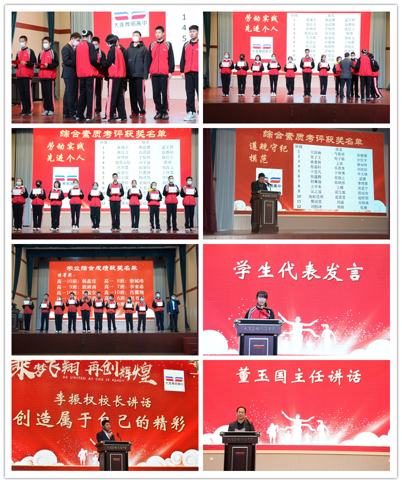 大会上,廖尔华主任了宣布2020-2021学年度(上)期中学业检测中,获得综合成绩突出奖、单科优秀奖、学业进步奖名单。董玉国主任宣布2020-2021学年度(上)期中综合实践活动评比中,劳动实践先进个人、遵规守纪模范名单。他们中有独占鳌头、深思创优、拼搏进取的“卓越之星”;有不甘落后、踏实进取、不断超越的“进步之星”;有学科专长、执着钻研、持久热爱的“单科精英”;有脚踏实地、遵规守纪、品质高尚的“道德模范”;有无私奉献、热爱劳动、积极实践的“劳动先进”。校长李振权为获奖优秀学生颁奖,意在通过本次表彰,激发全体同学的学习热情,鼓励全体同学养成向上向善的良好品质。