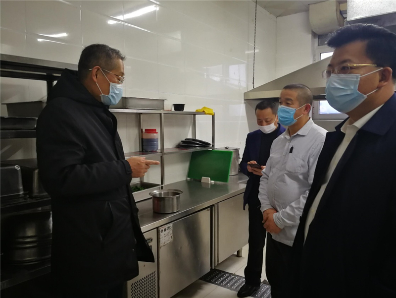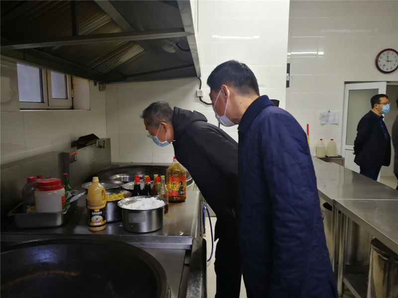 赵阳局长等首先了解了学校新冠疫情防控相关工作的基本情况,然后重点对师生口罩的配戴情况、疫情物资保障情况、食堂冷链食品存放与管控情况、人员的健康管理及核酸检测情况、食堂环境的消杀及卫生情况、食堂规范管理相关制度、食堂索证索票档案管理等方面,进行了全方位督查。