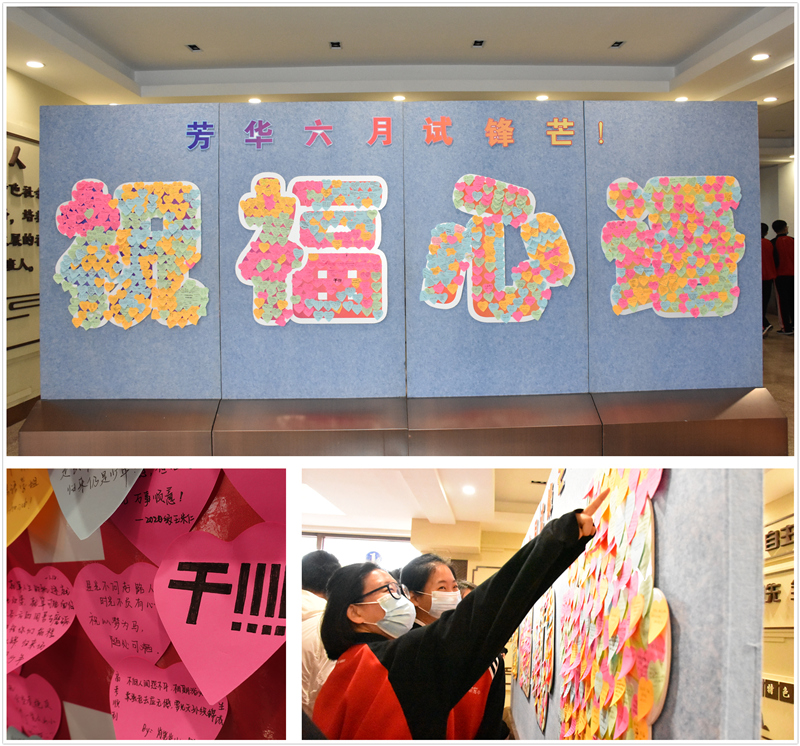 最后一次站在育明熟悉的操场,高三学子用自己独特的方式为自己壮行。熟悉的广播体操音乐响起,高三同学倾注真情,用自己标准的动作为高中三年的体育活动画上圆满的句号。随后,全体高三学子挥动着班旗,踏着整齐的步伐,喊着铿锵有力的口号奔跑在母校的操场。此外,高一高二学弟学妹还将自己的真心祝福写在祝福卡上,张贴在教学楼一楼大厅的祝福板上。