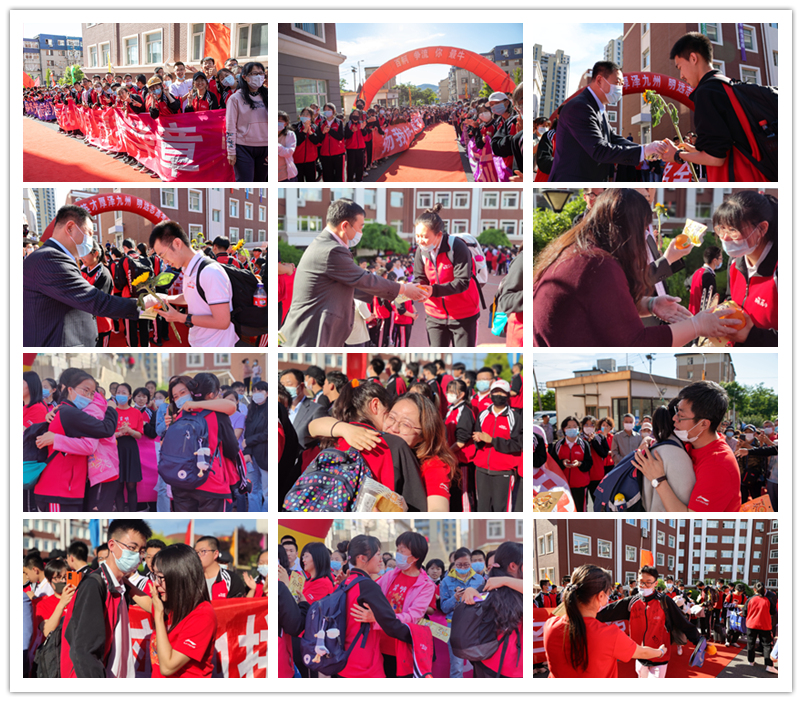 全场瞩目下,他们在喝彩声中穿过广场,踏上红毯,从校领导班子手中接过纪念品,惜别一路为己保驾护航的恩师团队。千言万语化作一个深情拥抱——点滴辛苦,血汗浇筑,尽在不言中。惟愿六月的答卷不负您三年的精心培养。长长的红毯笔直地指向前方,灿烂似火,延伸向名为未来的方向,相信育明高中2018级高三学子会一步步靠近高中生活中汗与泪织就的锦绣前程!