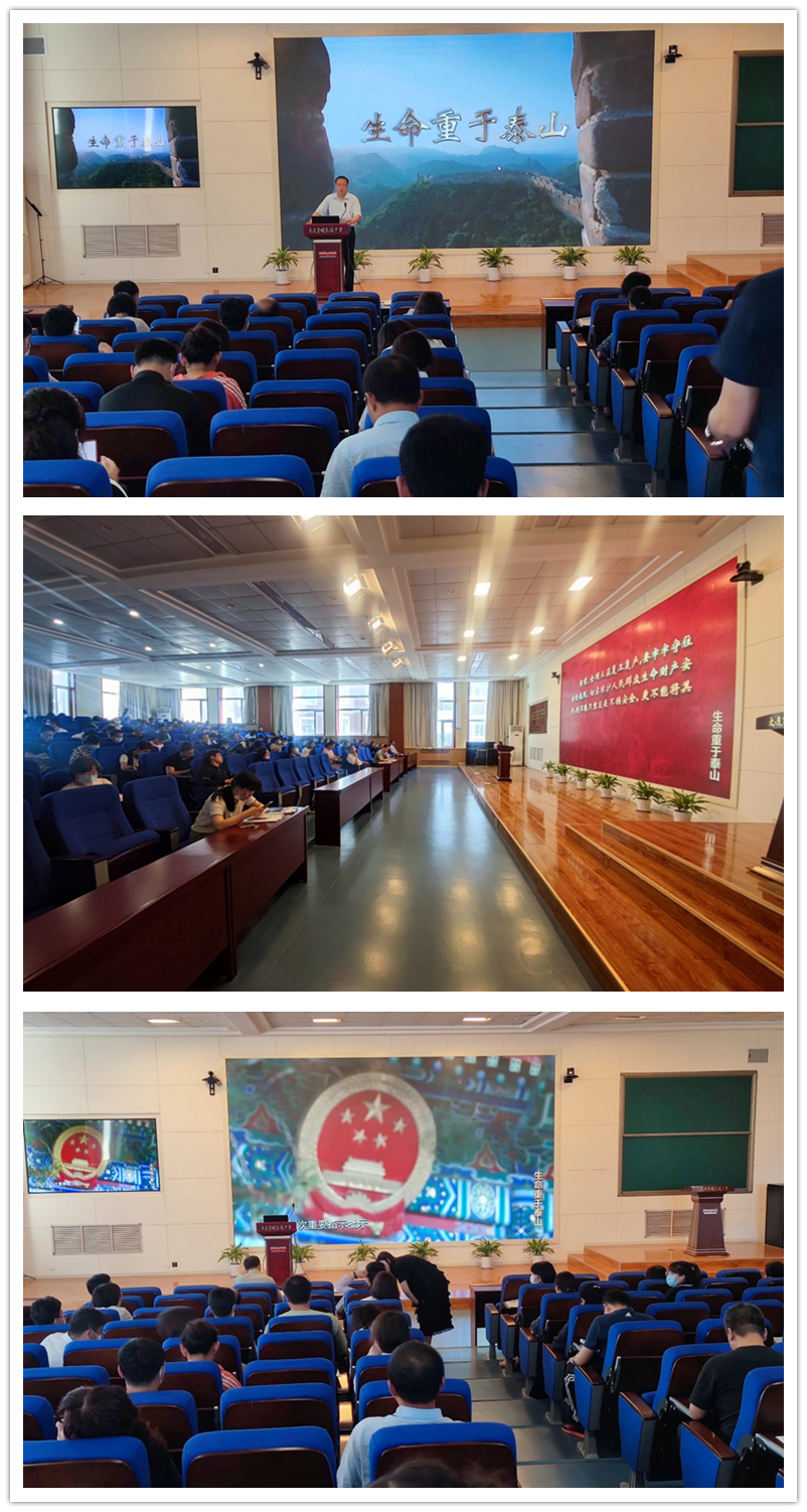 为响应省委、市委紧急号召,6月18日,大连育明高级中学召开集体学习大会,组织全体教师集体观看学习《生命重于泰山—学习习近平总书记关于安全生产重要论述》专题片。会议由党总支副书记陈德军主持。