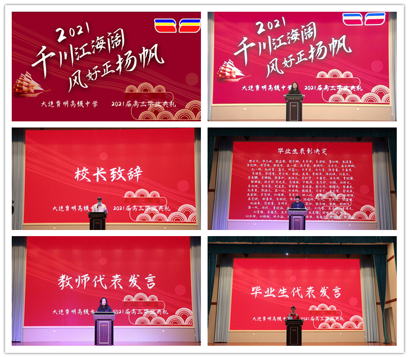 高中,是一种精神的凝固,是一串记忆的珠宝。我们是泊于青春港口的一叶小舟,在江川海阔之时,等待着扬起信念的帆,载着希望的梦幻,驶向辽阔的彼岸。大连育明高级中学2021届高三毕业生们定会铭记母校“民族、理想、荣誉”的校训,保持青春热血与自信张扬,带着育明精神昂首奋进,收获历练和成长!愿育明人拥有大格局、大视野、韧精神,张扬个性,追求卓越,书写人生,壮丽诗篇!