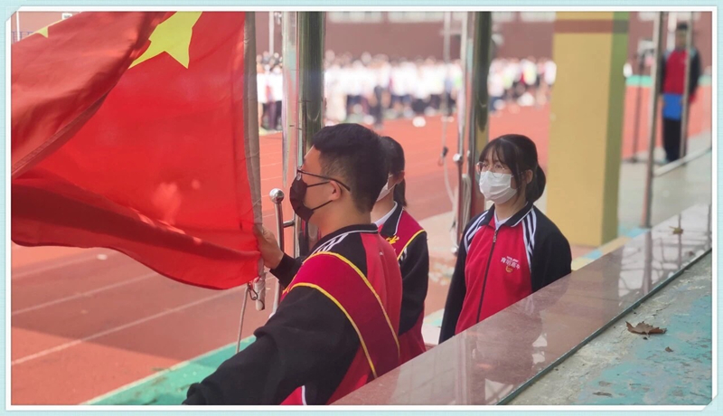 师生们严阵以待,唱响庄严国歌,歌声雄壮,仿佛带我们穿越到那个硝烟弥漫的战场,共产党员们抛头颅,洒热血,用血肉之躯筑起坚毅城墙!