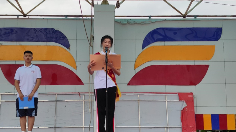 旗手赵喆喆同学,赵喆喆同学在班中担任班长,电教委员和心理课代表。在工作中她认真负责。在学习中,她严谨务实。在生活中,她乐于助人。愿他以今天为新的起点,继续坚定不移的向自己的目标前行。