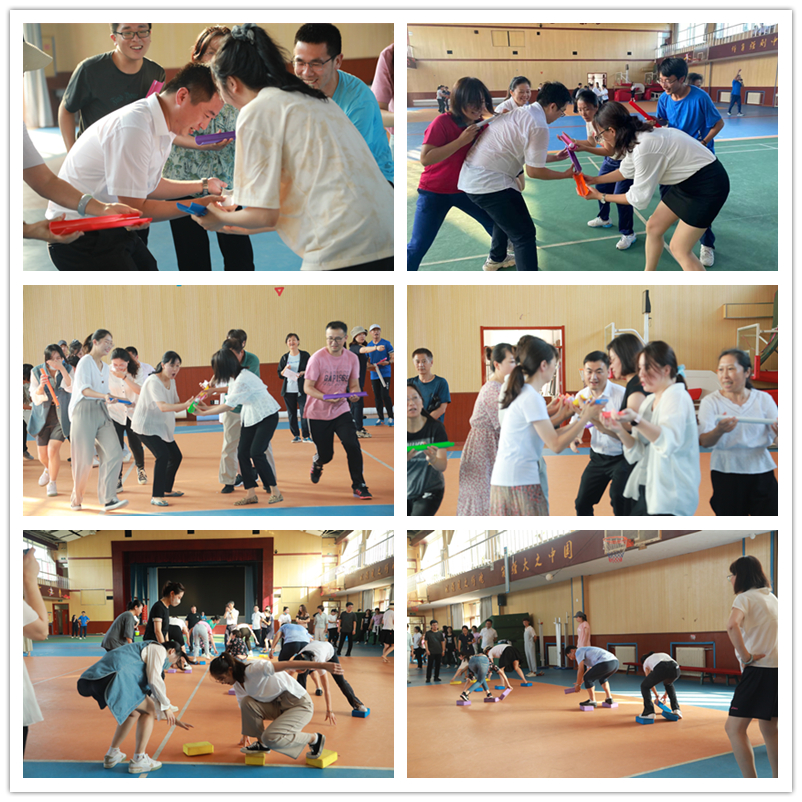 本次趣味运动会分为三个项目——同心击鼓、能量传递、摸石过河。这三个项目考察了教师们的团队协作能力、身体协调能力和临场应变能力。赛场上,大家团结协作,不断改进参赛方案,取得了一个又一个的突破。赛场上,教师们虽然汗流浃背,但也神采奕奕,笑容满面。