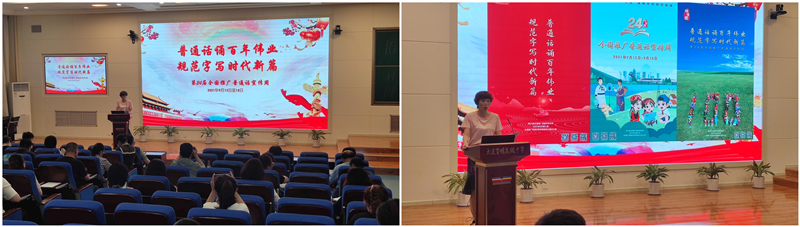 9月12日至18日为全国第24届全国推广普通话宣传周。为进一步推广和规范使用国家通用语言文字,传承中华优秀文化、提高教师语言能力、构建和谐语言生活,我校科研处开展了普通话全员培训活动,由语文组侯杏梅老师做《普通话诵百年伟业,规范字写时代新篇》专题讲座。